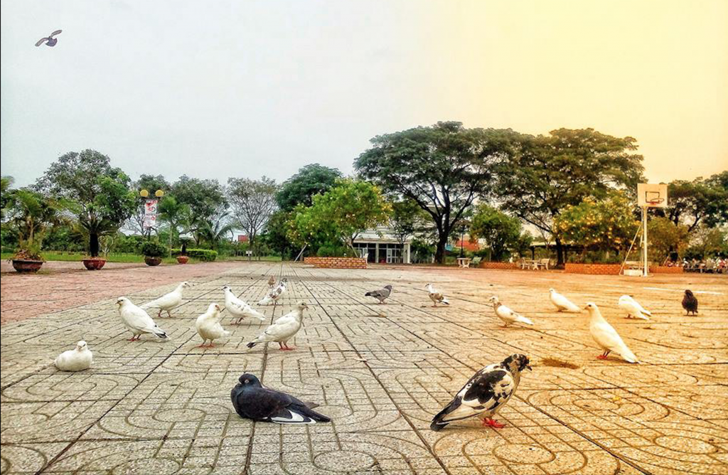Dân học Kinh tế – Luật chắc hẳn sẽ biết đến đàn “chim gà” phía sau trường. Sở dĩ chúng là chim Bồ Câu, nhưng do quá béo tốt nên khi gặp các bạn sinh viên, chúng sẽ bỏ chạy hoặc đứng nhìn. Về tội ác của lũ chim gà này gây ra thì vô số nhưng đi vệ sinh không đúng nơi quy định, tranh đồ ăn của các bạn sinh viên..v..v.