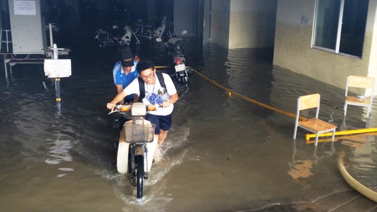 – Zing: Hầm giữ xe ký túc xá Đại học Quốc gia TP.HCM lại ngập sâu